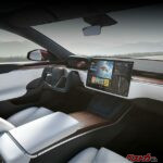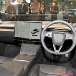 テスラのインテリアはモダンなリビングルームのようだが、空調を完全に黒子扱いしており、エアコンの風も、左右を貫くダッシュボードのすき間から出る。風向すらタッチパネルでコントロールするので、フラップや風向変更のダイアルすらないストイックさ。まるでダイソンの扇風機だ。
