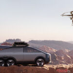 クルマから分離して空を飛ぶエアモジュールは、その「母船」の後部に格納されている。空を飛ぶ時はいったん地面に降ろされ、乗員が乗り換え、プロペラを展開してから離陸するらしい。積み下ろしの仕様は不明だが、車両側が完全自動で行うということだ。