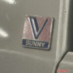 サニーラルゴのホイールキャップにはしっかりとバネットマークが入っている。この他にも、車体側面にサニーのエンブレムが付いていたり、フロントには「NISSAN」、「SUNNY VANETTE」とローマ字で刻印が入っている。