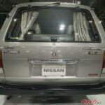 すごいのはリアだ。サニーバネットラルゴ ディーゼルターボ グランドサルーンという長すぎる車名を何個かに分割して左右両方に敷き詰めて、中央に小さく「NISSAN」と書かれている。