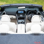 撮影日はあいにくの雨だったが、時折やむ時間を使って屋根を開ける。本革の真っ白なシートが現われ、上品なことこのうえない。