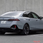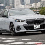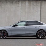 2023年8月に日本で発売開始した8代目5シリーズ。i5はEVでMモデルはEVのみの設定。試乗車は全長5060×全幅1900×全高1505mm、ホイールベース2995mm、車重2360kg。