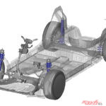 専用チューンの車速感応式電動パワステ、専用ダークウッド調フィニッシャー、ブルーステッチが入れられたステアリングやアームレスト。
