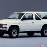 テラノはハイラックスサーフ同様、ダットサントラックを乗用車化したモデルとして登場。3ドアのみだった初代モデルは後に5ドアを追加し、静かでパワフルなV6ガソリンを設定したことも特徴だった。