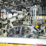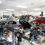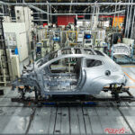 ロボットに加え、匠と呼ばれる高い技術を持つ職人さんたちの手作業を組み入れ、ばらつきの少ない、モータースポーツで勝てるクルマが誕生している。約400人が就業し、1日の生産台数は60~70台。