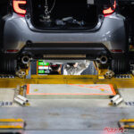 さまざまな工程で精度チェック。取り付ける部品も精度を合わせていく。さらに足回り部品は1Gをかけた状態で締めるとか、アライメントは競技車両レベルで合わせていく。その上で全数を走行テストしているのだった。