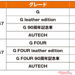 ポイントはやはり外観の変更。特にフロントまわりは、日本の伝統工芸を感じさせるデザインのグリルがヘッドランプ下までワイドに広がり、そのヘッドランプ直下にはボディカラーと同色またはダークメタルグレーのアクセントを配置。