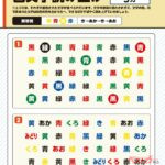「色文字読み上げ」というドリルで、文字に惑わされずに「文字の色をテンポよく読み上げる」というもの。例えば1番。横の一行目、左から右へ「赤→黒→緑……」とテンポよく読み上げるワケです。
