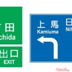 一般道路では青色、高速道路では緑色で示され、路線名や行き先の地名などを案内する。