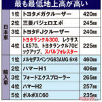最も最低地上高が高いクルマ(赤文字は現行モデル。以下同)