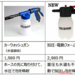 今回注目したいのは加圧・電動フォームガン。洗車用シャンプーを泡立てて吹き付けてくれる便利アイテムだ。これがあればスポンジでボディをこする回数が減らせるから、疲れないうえにボディを傷付けにくくなるわけ。