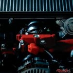 エンジンは、タービンの大型化や吸排気系の最適化に加え、各パーツのバランス取りも行い、ハイパワーと滑らかなフィーリングを実現。締め上げられた足まわりには、BBS製ホイールとピレリ製タイヤが組み合わされた。