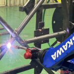 SFA溶接ロボットの開発に携わる安川電機の柴田将太さんはドリフトが大好きなクルマ好き。自分でロールケージを組付けたことがあるだけに溶接のたいへんさはよくわかっている。それだけに、「実際の職人さんとも何度もディスカッションさせてもらった結果、ロボットにしかできない高い技術と品質を生むことができました」と1年かかった技術開発を振り返った。