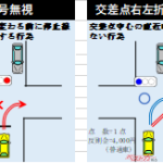 それ以外にも。対向車が左折する隙を見て右折する、信号が青になる直前赤信号時に信号を無視して右折を行うフライング右折する、右折時に信号が赤に切り替わっても前車に追従して右折を行う、脇道から右折する際、合流しようとする道路の左側車線を走行しているクルマの流れをせきとめて右折待ちをするなどだ。