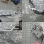 左上からパワステホースASSY。金属ホース部分再利用で新たにカシメ直された部分。右下は取り外されたスターターモーターASSY