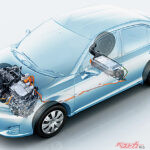ハイブリッドの機能は基本的にアクアと同じ。エンジンやモーターの出力、駆動用ニッケル水素電池の容量、最終減速比まで等しい。