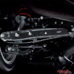 同時にサスペンションの取りつけ部も高性能タイヤに合わせて強化した。特にリアサスが凄い! 3つのアームのブッシュをピロボールにしている。