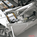すでに7月のニューヨーク、ロンドン、北京と同時発表された時点でレポートしているが、アルミフレームの上に軽量なカーボン(CFRP)のインナーボディ、プラスチック製のボディパネルにより、重いリチウム電池(約230kg)を積みながら1195kgの重量に抑えられるからその走りは当然期待できるわけだ。