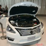 『新型ティアナは新開発の直列3気筒1.5L直噴ターボを搭載してJC08モード燃費は18.5km/Lです。日本のお客様には3気筒というとちょっと抵抗を感じる方もいらっしゃるかもしれませんが、いま、中国では小排気量ターボは高級メカニズムとして高く評価されているんです。