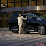 最初に乗ったのはBYDのハイエンドブランドDENZA(デンツァ)のミニバン「D9」。2023年のJMSに展示されていた“あの”モデルだ。エクステリアがアルヴェルに似ているのは事実だが、個人的にはスクエアではなくラウンドしたプロポーションはオデッセイの雰囲気もあるかも? フロントグリルはパワートレイン違いで2タイプ用意されるが、今回のモデルはPHEVなのでブロック形状だ。