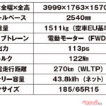 そのバッテリーの容量は43.8kWh(ネット)で、航続距離は最大でも320km(WLTP)に留まる。また、充電時間は通常(AC)で260km分を7時間、急速DCでは32分で200kmまでの走行が可能である。