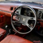 試乗車は1980年代前半では当たり前だった”パワステなし”。重いだけでなく、ステアリングギア比の関係でたくさん回さなければハンドルが切れない。日本で初めてABSを実用化したクルマでしたね。エンジンは5MT仕様だったので、125馬力1800ccツインキャブ。2代目モデルも40年選手。現代のクルマと比べハンドルやAピラーが細く華奢な雰囲気であります。