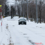しかし走り出してすぐに驚きます。直線は想像以上に安定し、スタッドレスよりも安心感があるほど。一方コーナーは減速が重要で、丁寧に走るか滑らせるかで挙動が大きく変わることを体感しました。
