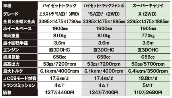 ■スーパーキャリイとハイゼットジャンボそれぞれの特徴