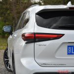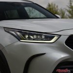 今回、現地で用意されていたのは2.5Lハイブリッドの4WD車だ。姉妹車のハイランダーとの違いだが、フロントグリルの中央に鎮座するクラウンエンブレムを備えているほか、3連仕様のLEDヘッドライト、北米でのハイランダーのスポーティモデル「XSE」フロントグリルを装着しており、スポーティ感が強調されている。