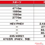 最後に価格……は、もちろん未発表だったが、筆者はハイブリッドがクラウンクロスオーバーと同程度の435万~570万円くらい、PHEVがハリアーPHEV(620万円)とレクサスNX PHEV(725万円)の間となる670万円程度と予想する。