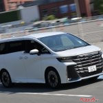 サスペンション設定は予想していた以上に違う。ヴェルファイア、高速域&高い横Gを出せるような味付けになっている。高速道路の安定性や、コーナリング性能を重視したそうな。乗ると運転している人は「2トンを超えるミニバンと思えないようなシャープな走りですね!」。