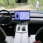 続いてインテリアをチェックすると、中央には中国車の常とも言える大型でワイドな16.1インチセンターディスプレイが鎮座する。基本的に物理スイッチは極力排除されているため、アプリによって車内での操作を行う。