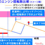 AT車では、オーバーレブによるエンジンへのダメージを防ぐために、エンジン回転数に制限をかけていたが、アクセル/ブレーキの開度や減速度などからドライバーの意図を総合的に判断し制御することで、マニュアルシフトダウン時の許容回転数領域を拡大。ドライバーの意思で回転数をコントロールできる自由度を高めた。