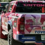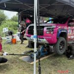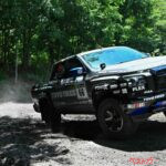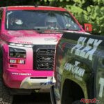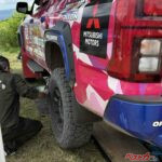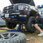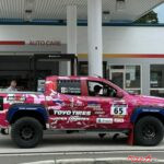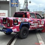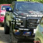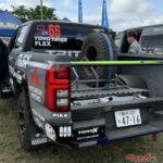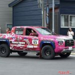 2台それぞれ足まわりのセッティングなどは異なるものの、トランスミッションはATのままながら東南アジアで開催されるAXCRマシンと同じ制御を取り入れたほか、トライトンに設定のないパドルシフトも装備。タイヤはどちらもトーヨータイヤの新作オープンカントリーR/Tトレイルで、昨年よりもレベルアップを果たしている。