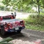 川畑選手はSS4でクラストップの成績を納めるなど、三菱ラリーここにアリ!! といった状況に。その調子でいくかと思いきやコーナーを曲がりきれずにクラッシュ寸前となる一面も。