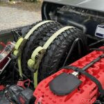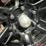 ホイール中心に注目してほしい。これ巨大なセンターキャップかと思いきや、ラリー中にトラブルに見舞われた際により手軽に脱着ができるようにホイールハブからこの巨大なシルバーの筒を凸出させているのだ。いってみればガイドラインみたいなもので、聞けばタイヤホイール1セットで30kg超えのため、このセンターキャップ風の装置があるのとないのとでは万一の際の対応速度が変わるのだという。