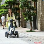 最高速度は6km/hまで出るので、想像以上に快適に、早く移動が可能。路面の凹凸も感じさせない乗り心地のよさで、長時間乗っていても疲れない