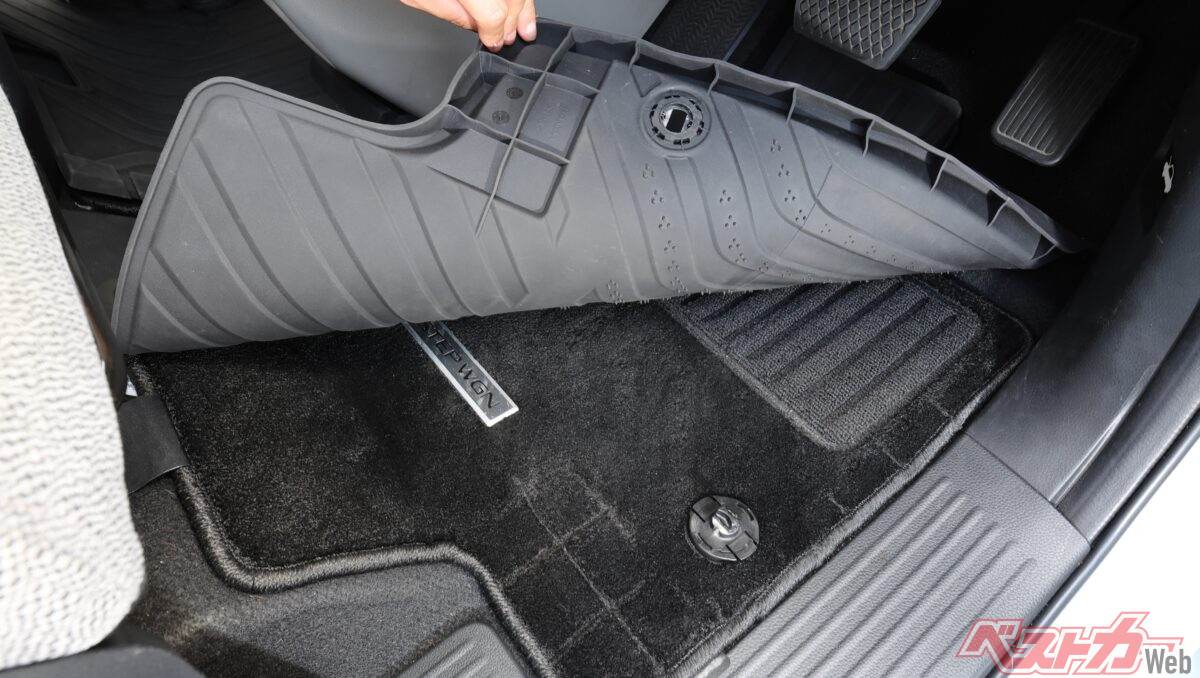 国内においてはフロアカーペットマットの上にオールウェザーマット(ホンダではオールシーズンマットという)を重ねることも可能となっている。じつはこれも超絶日本的なお話で、せっかく買ったマットを汚したくないという声が多く、ならば!! とオールシーズンマットと二重敷きを可能にしているのだ。
