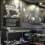 ブースの壁面には“FAST & FURIOUS”(※原題)のパネルが掲げられ、上段から順に「1/12 Nissan Skyline GT-R」「1/12 Dodge Charger」「1/12 Toyota Supra」「1/18 Dodge Charger」「1/18 Toyota Supra」の文字が並ぶ。