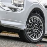 触ってみるとかなり柔らかい印象です。乗り心地や操縦安定性に影響を与えるショルダーはとても重要な部分なので試乗の前には、必ず見て触って確かめることにしています。タイヤサイズは255/45R20です。やはり20インチのタイヤは見た目も迫力がありますね。