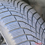 トレッド面を改めてチェックすると、もちろん多少の減りは認めるものの、細いサイプもしっかり残っていて、新品時と顔つきが大きく変化していない。タイヤの溝はすべてが同じ深さではないため、摩耗に従って溝の面積が減り、相対的にゴムの面積が大きくなってくる傾向があるのだが、シンクロウェザーは約2万キロ走行時点では変化はない。