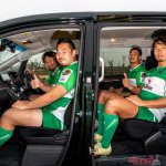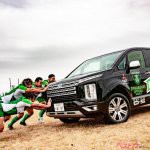 チームのロゴが大きく描かれたデリカD:5に、スクラムの中心選手で体形もデリカ似? の安江選手に実際に乗り込んでもらうと、「個人的にクルマが好きで、若い頃から四駆に乗ってきました。デリカは四駆のパイオニアというイメージがあります。ラグビー選手って仲間意識が強くて、キャンプやバーベキューが大好きなんです。大人数で、荷物も入れて、ちょっと川辺とかにも入っていける力強さが、すごく魅力ですね。アウトドアもですけれど、街乗りもできるような器用な感じも親近感があります」と満足そうにハンドルを握りしめた。