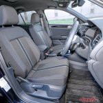 少し物足りなさのあったインテリアもこの仕様はインパネ、シフトまわりが広範囲にピアノブラックで覆われ、センターにストライプが入ったセミバケット風のブラックファブリックのシート付き。これがしっかりとした座り心地で質感が高い。