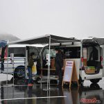 ホンダN-VANをうまく使った受付ブースで受付を済ませると、参加者たちはテントへと誘導された。早速今日のテーマとなる「実効空力」の説明が始まる。マイクを握ったのはモデューロの開発統括を担う福田正剛さんだ。