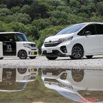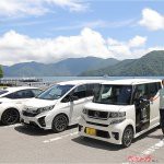 まずは純正ノーマルウイングのシビック タイプRでN-BOXと同じコースを試乗。折り返し点の駐車場でModulo製純正テールゲートスポイラーに交換し、復路は走りの違いをチェックするという段取りだ。