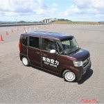 自らの愛車で走る前に、まずはデモカーのN-BOXを使って、全員が実効空力デバイスの「あり」「なし」による乗り味の違いを体験する。コースにはあらかじめパイロンが配置され、定常円や奥がきつくなるコーナー、段差などが体験できるようになっている。スピードは街中での走行を意識して、時速50kmをリミットとした。