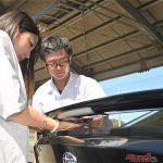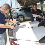 待ちに待った参加者の愛車の出番だ。各人のクルマの回りには、福田さんや湯沢さんほかホンダアクセスの開発メンバーが張り付き、装着位置や数などについてアドバイスを行う。空気の剥離点や車両全体の空力バランスなどを見ながら助言する様は、まるで実効空力エアロパーツ開発の1シーンのような錯覚を覚えた。