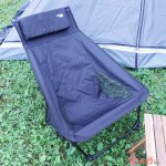 テントの前にはトレッカー グランドリクライニングチェア(ブラック)27,500円とCSクラシックス FDローテーブル90 8,360円を置いて、いつでもくつろげるようにしている。