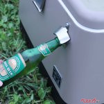 食材や飲み物などは、スチールフォームクーラー51L (カーキ:39,050円)に入れて持ち運んだ。大容量なので、氷と一緒に入れてもたくさん入るのが便利。栓抜き付きなのも、瓶飲料好きにとってお気に入りポイントだ。