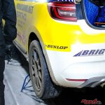 このタイヤじゃダメだとなりダンロップに泣きついたところ「本数は十分揃えられないかもしれませんが何とかしましょう」。ということで昨年のラリージャパンはダンロップです! するとどうよ! グリップレベル、全く違いますね! SSを3本走り、セットアップ改良したら、全く違うクルマになった! タイムも驚くほど良くなり、格上のクラスを喰えるほどに!